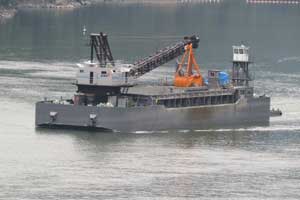 浚渫作業は、佐久間ダムがガットバージ船 x 1、ポンプ浚渫船 x 2、グラブ浚渫船 x 1、秋葉ダムはグラブ浚渫船 x 1 の体制で作業をしており、1船の人員は4~5名です。